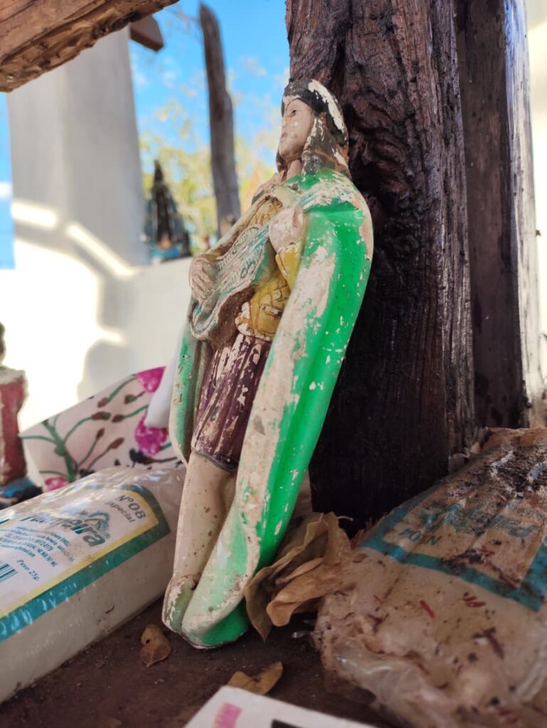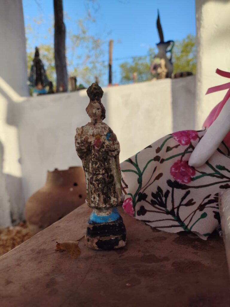A minha mãe MARIA CIPRIANO CANÁRIO (Maria de João Moura) fez uma promessa onde tinha como pedido principal, o fortalecimento do meu pescoço; minha mãezinha encomendou ao senhor ANTÔNIO DE SEVERIANO)* uma cabeça de umburana com pescoço e tudo. Lembro-me que em uma manhã de domingo, montamos em um jumento (apelidado de mulambo) e fomos pagar a promessa. A minha cabeça continua grande como nasceu, mas o pescoço até hoje está fortalecido e tem suportado o peso.